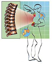 Because the muscles, ligaments, bones, discs and nerves that comprise your spinal column are so interconnected, it's often difficult to determine without a comprehensive exam and X-rays, exactly what the cause of your pain may be.